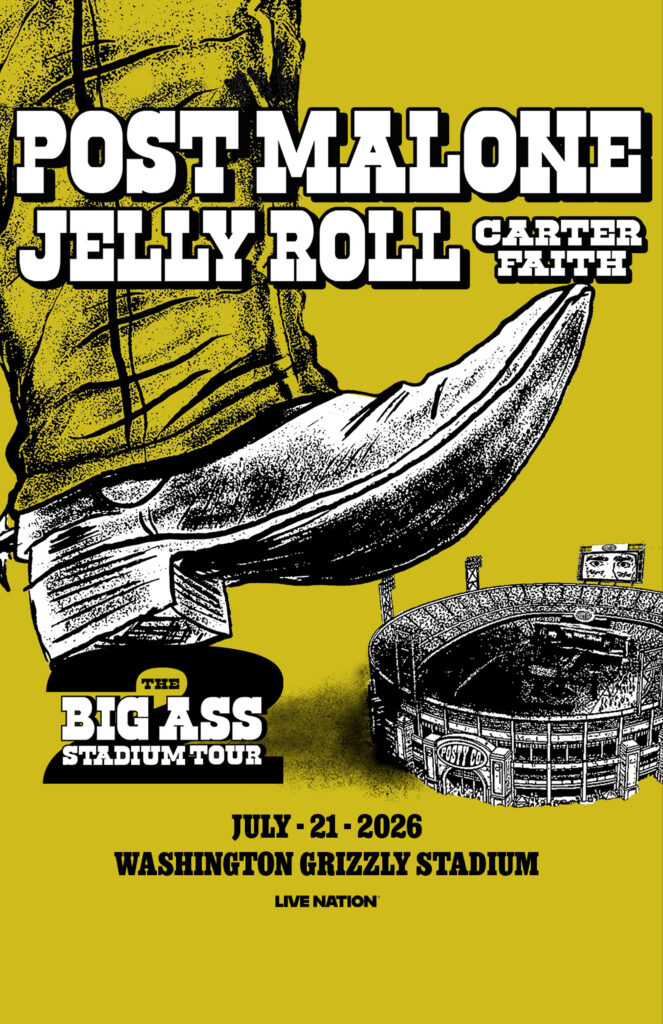 Posty’s coming y’all! Is this real life?! YES! Global superstar Post Malone along with Jelly Roll and Carter Faith are bringing the BIG ASS Stadium tour part 2 to Washington Grizzly Stadium July 21st!